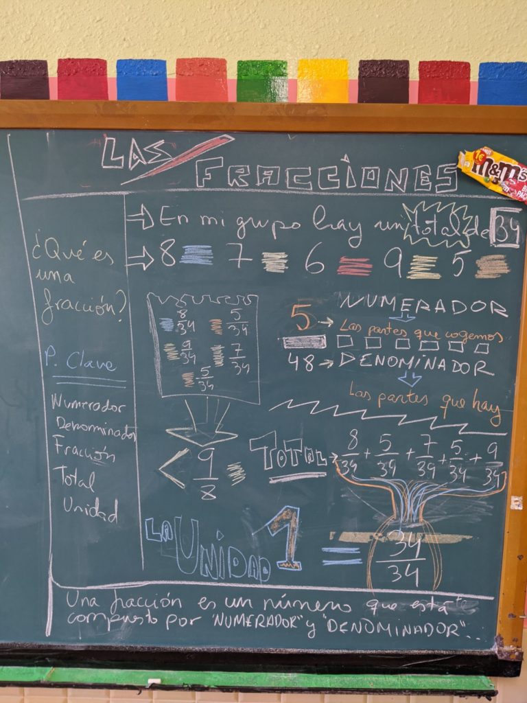 Nuestro primer día de trabajo con las notas Cornell, lo realizamos en clase paso a paso. Vimos un vídeo sobre el concepto de fracción y realizamos una actividad con M&M’s para trabajar de manera práctica. Entre todos hicimos una Nota Cornell en la pizarra a la vez que ellos la realizaban en su libreta.