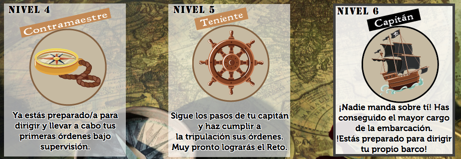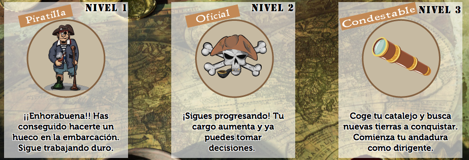 Una de las partes importantes en la búsqueda del tesoro de “Monkey Island”, son las insignias que se otorgan al alumnado cada vez que supera un nivel de resolución de problemas.